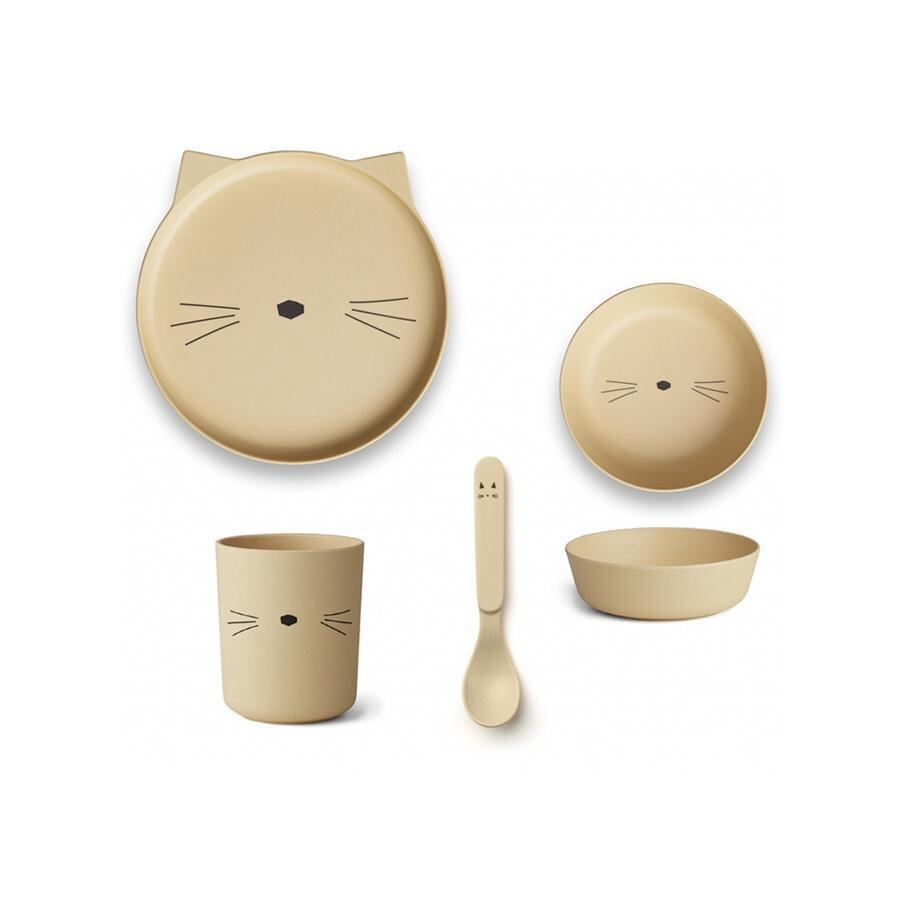 【即納】Liewood Bambusgeschirr-Set "Cat Smoothie Yellow"