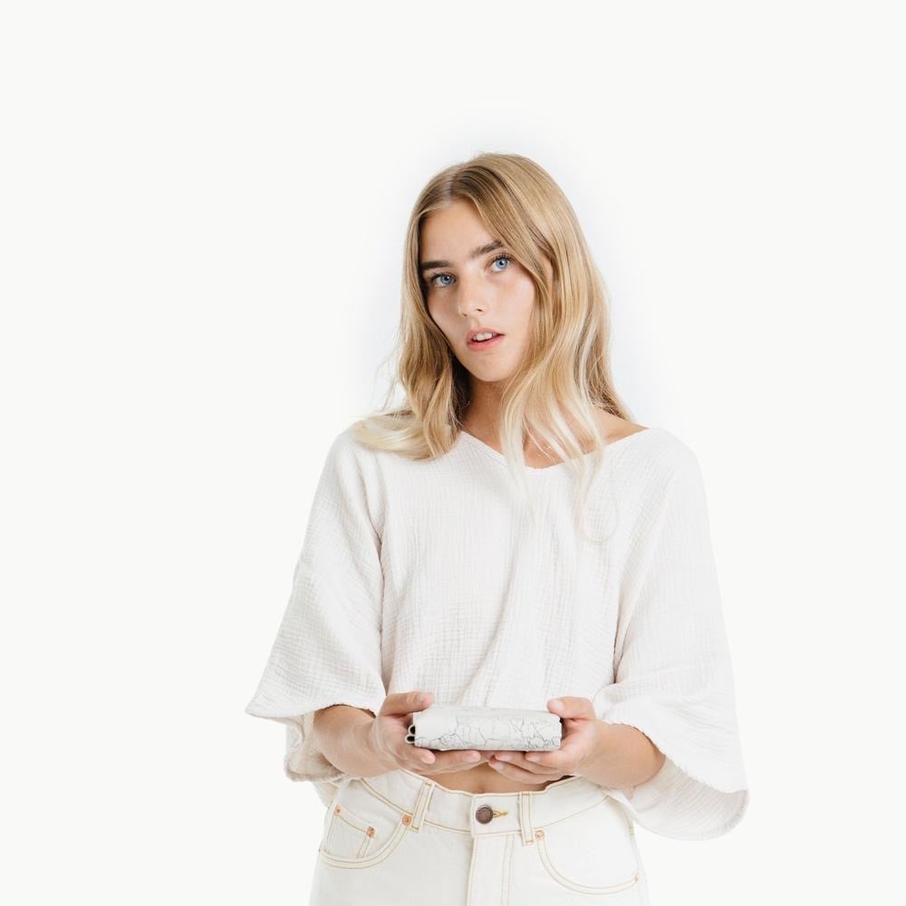 gathreのマットは表はビーガンレザー、裏は植毛スエードで、本革の感触とフェイクレザーの便利さを兼ね備えています。