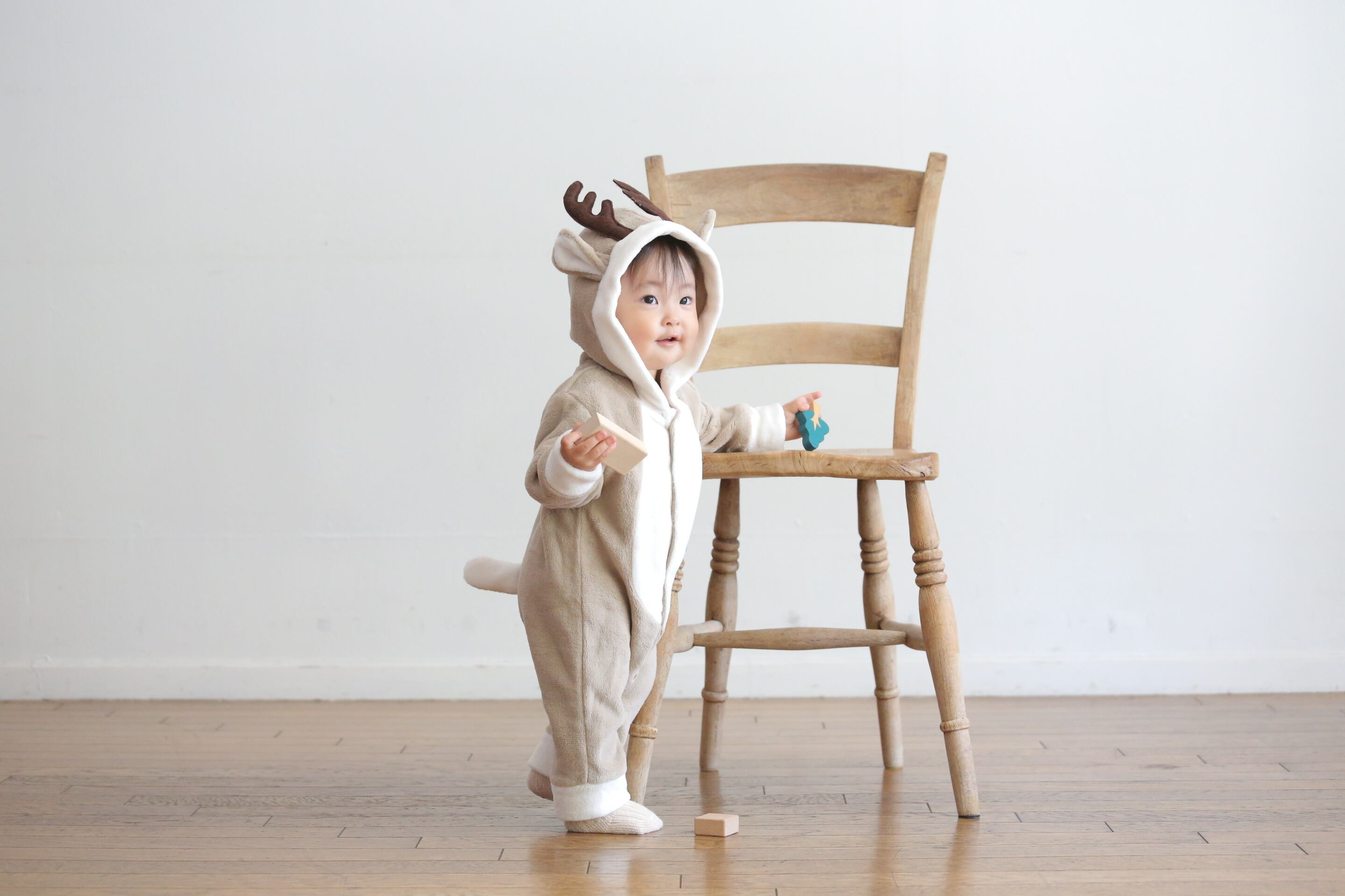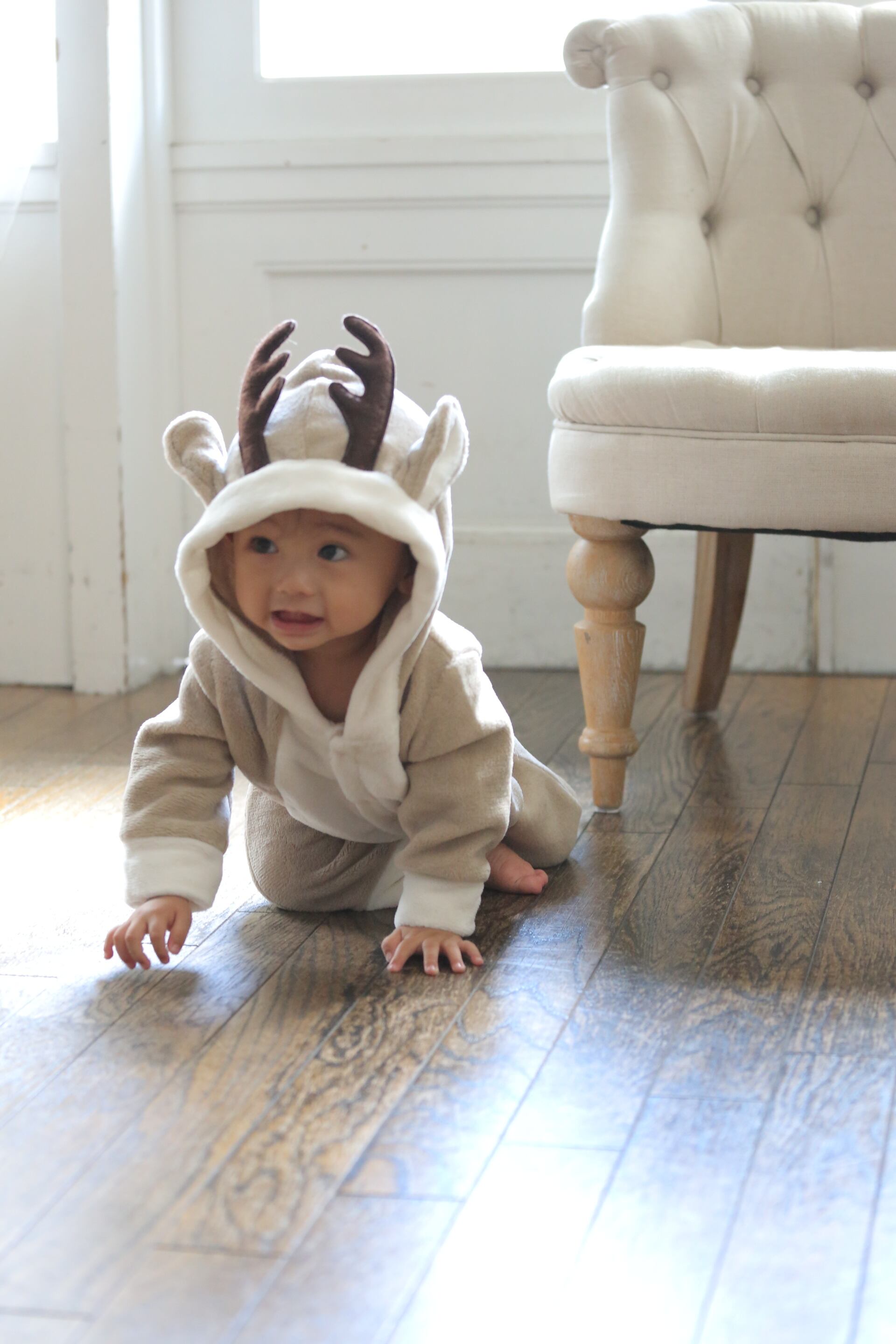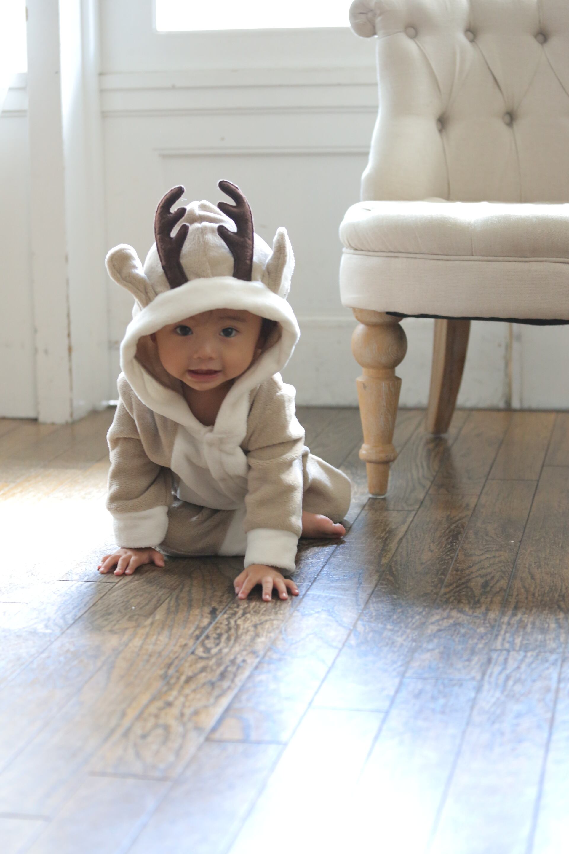 盛り上がるクリスマスやハロウィンでの仮装、イベント、パーティーやSNSはもちろん、普段使いにも大活躍!もこもこ素材が愛らしいトナカイロンパースです。