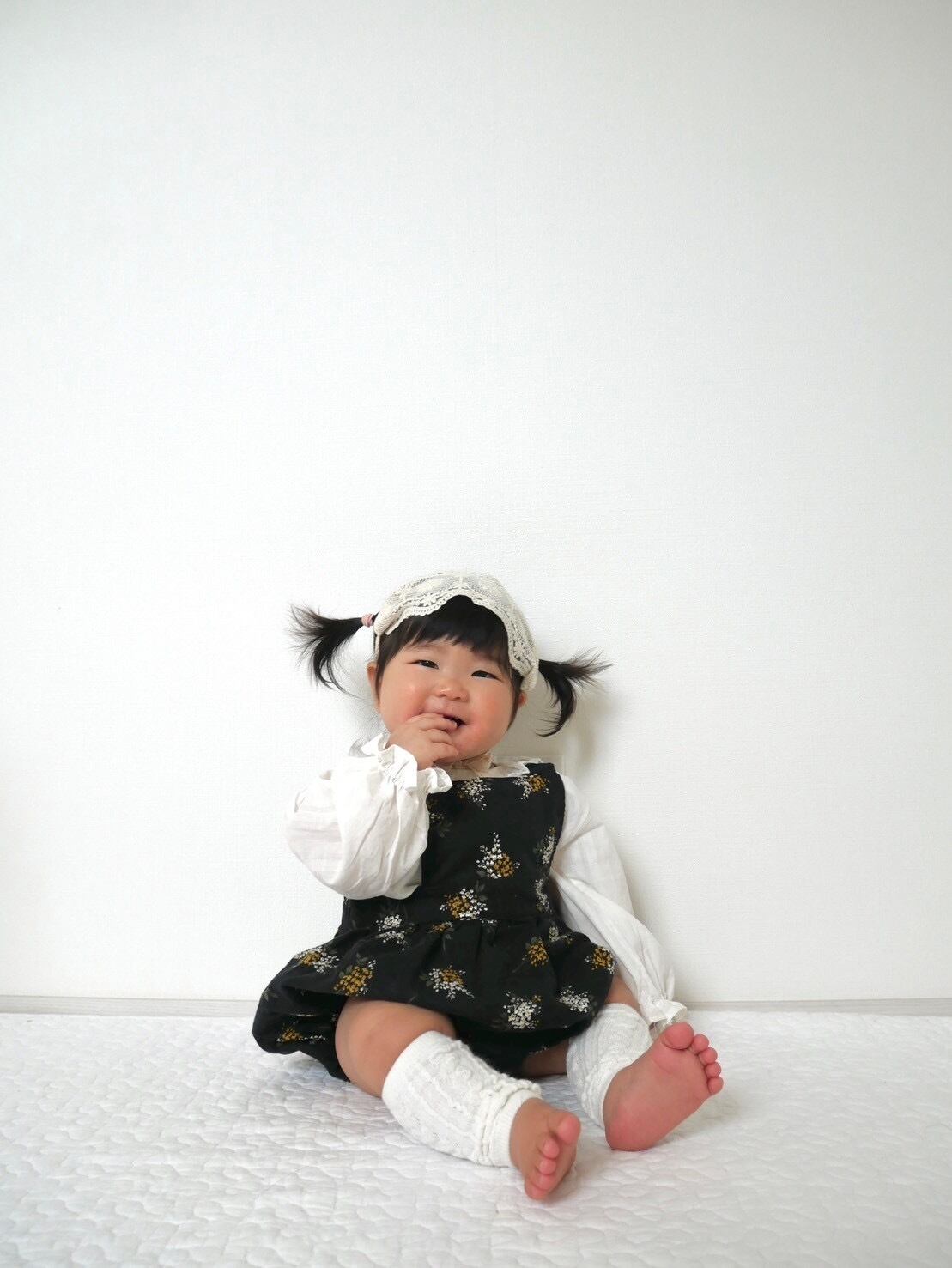 花柄のサロペット。股にはボタンがついているのでおむつ替えも楽々。